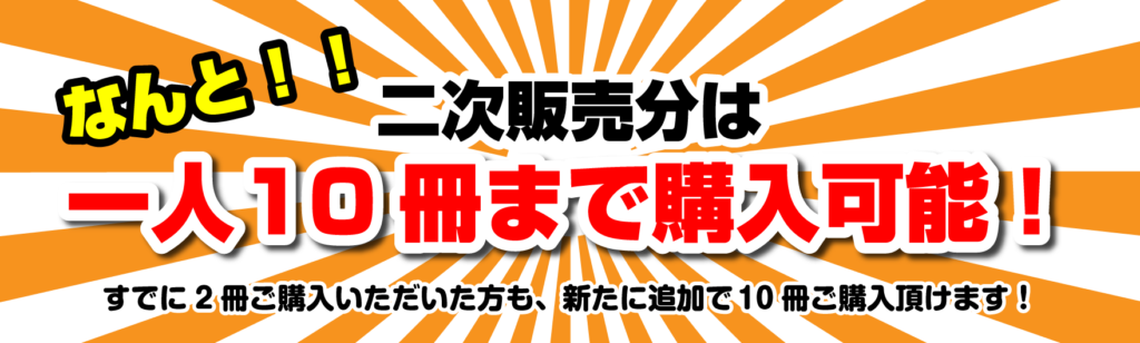 | 二次販売分は何冊買えますか? | お一人様10冊までとなっております |