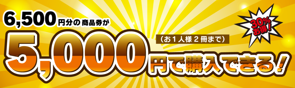 合わせて1冊6,500円(500円券が13枚)を5,000円でご購入いただけます。