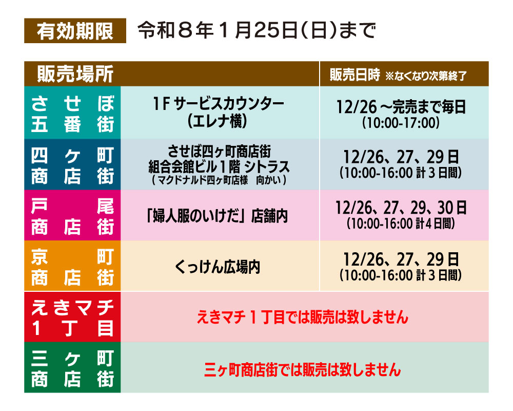2025 SASEBOCORE6 プレミアム付商品券(紙チケット)二次販売決定!