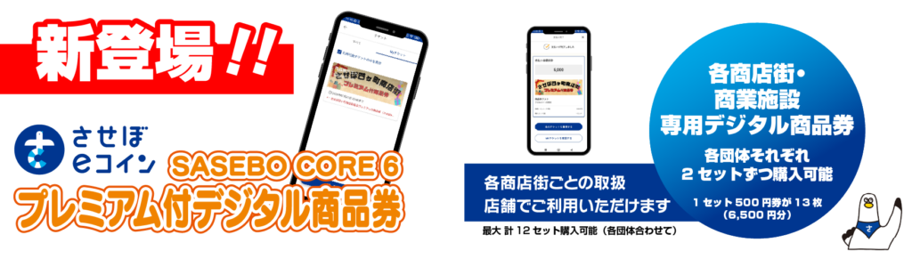 SASEBOCORE6プレミアム付デジタル商品券を「させぼeコイン」アプリ内にて販売を開始いたします。